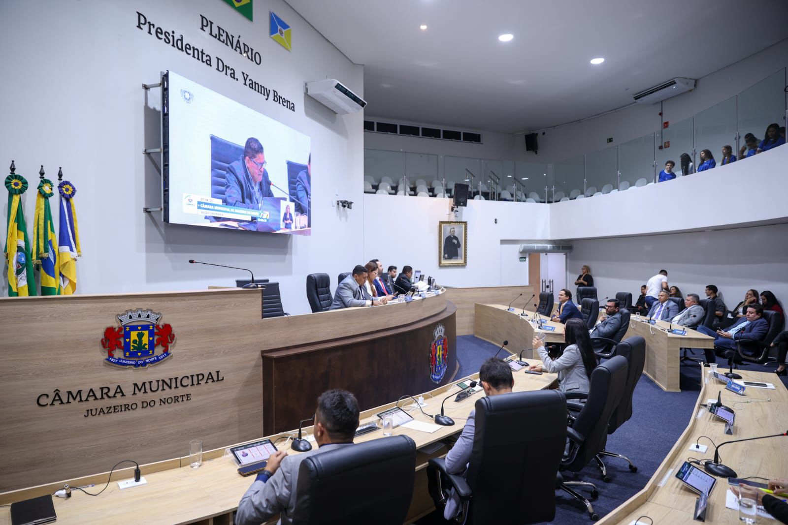 A Câmara Municipal de Juazeiro do Norte realizou, nesta quinta-feira (7), no Plenário Presidenta Dra. Yanny Brena, mais uma sessão ordinária marcada por homenagens, reivindicações e votações de matérias. Os trabalhos tiveram início com um ato solene de outorga de moção de honra ao mérito às quadrilhas juninas Nação Nordestina e Flor do Sertão, em reconhecimento aos relevantes feitos culturais realizados por ambas. A honraria foi proposta pelo vereador Vandinho Pereira (PP).