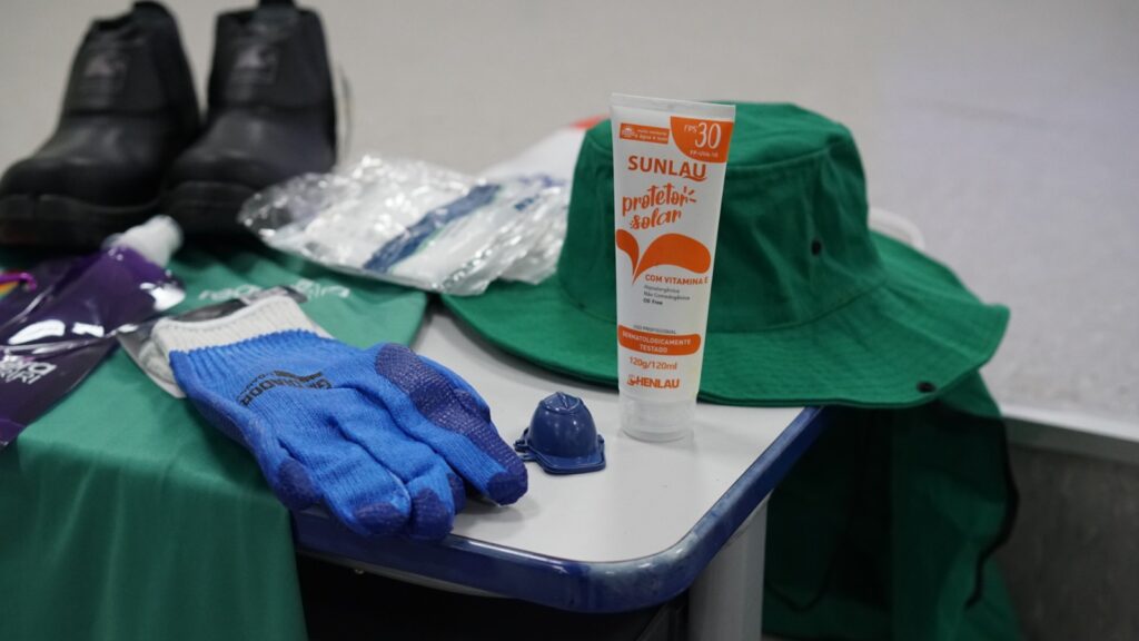 Os catadores de materiais recicláveis de Farias Brito que irão atuar na vaquejada do município (ExpoVaq) participaram, nesta sexta-feira (12), de capacitação sobre a importância do uso de Equipamento de Proteção Individual (EPI). A ação foi realizada pela Regenera Cariri, em parceria com a Prefeitura de Farias Brito, e contemplou nove trabalhadores que, além da capacitação, receberam kit contendo protetor solar, protetor auricular, máscaras do tipo N95, garrafa de água, luvas, chapéu, botas e camisa com proteção ultravioleta.