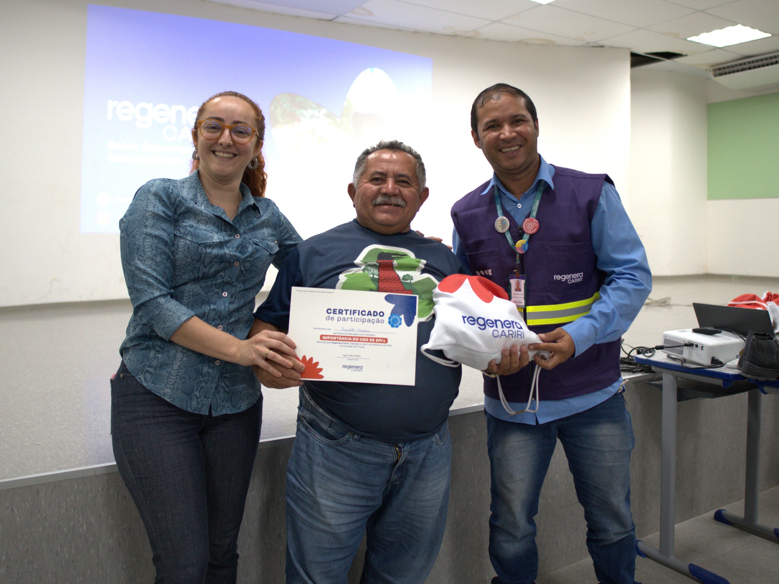 A formação e a entrega dos materiais foram realizadas pela Regenera Cariri, que também disponibilizará alimentação para os catadores em todos os dias do evento