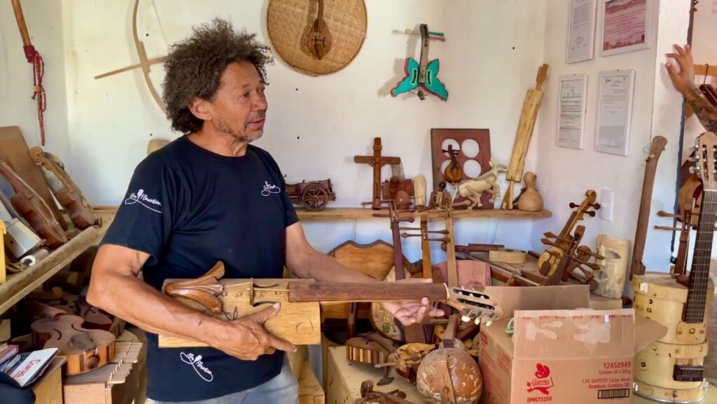 A economia circular tem ganhado força, também, como alternativa sustentável para o setor cultural. No Cariri, essa ação se materializa no trabalho do Mestre Aécio de Zaira, artesão e músico do Crato, que transforma materiais descartados em instrumentos musicais. Ao reutilizar madeira, metal e outros resíduos, ele não somente evita o desperdício, mas também ressignifica objetos que seriam descartados, dando uma vida nova por meio da arte.