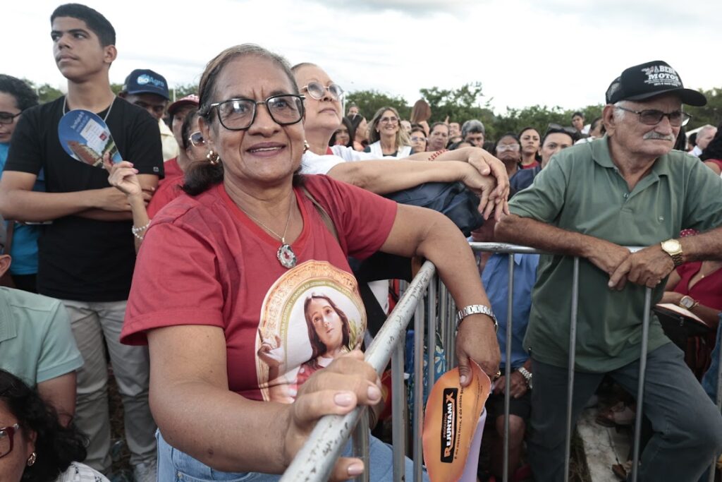O depoimento da fiel aconteceu no novo ponto de peregrinação, fé e religiosidade do Ceará. O Governo do Estado entregou, neste sábado (25), o santuário e todo o complexo com homenagem à Beata Menina Benigna. A área de aproximadamente 48 mil m², que recebeu investimento de R$ 16,9 milhões, conta com estátua de 26 metros, trilha para romaria, esplanada para cerimônias e amplo estacionamento. A inauguração contou com a participação do governador Elmano de Freitas e também teve a presença do senador Camilo Santana, entre outras autoridades.
