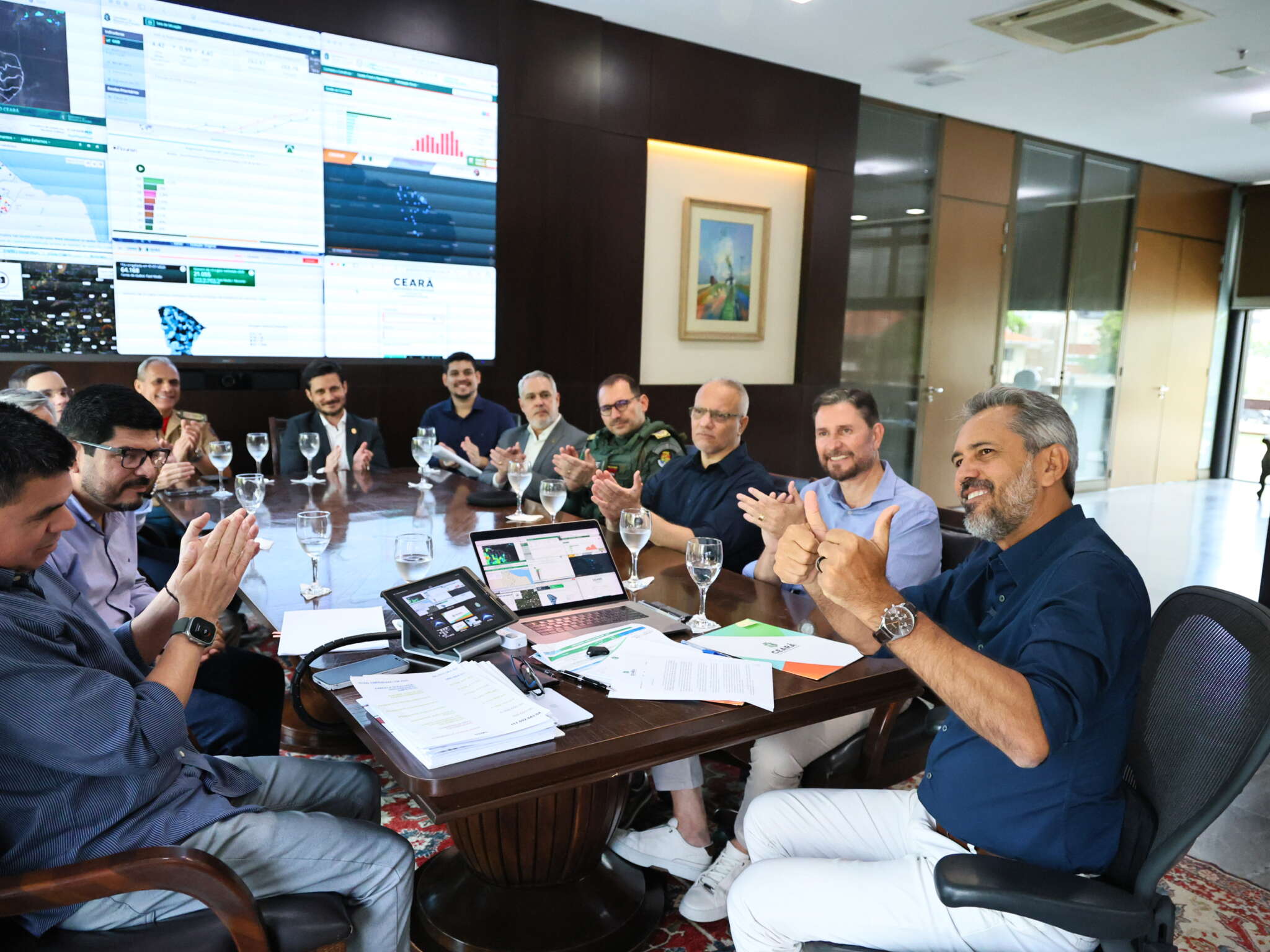 Com a alteração, militares terão ganho de quase 30% no benefício; o vale também será fixo mensal para todas categorias das Forças de Segurança O governador Elmano de Freitas assinou, nesta quarta-feira (25), um Projeto de Lei com novas regras sobre o pagamento do auxílio-alimentação para as Forças de Segurança do Ceará. A Mensagem, que segue para Assembleia Legislativa do Ceará (Alece), iguala o valor do benefício dos militares aos demais servidores estaduais e estabelece que seja pago mensalmente e de forma linear a todas as categorias das Forças de Segurança do Estado, contemplando mais de 31 mil servidores. O anúncio aconteceu após reunião com a participação da cúpula da Segurança Pública; do secretário do Planejamento e Gestão, Alexandre Cialdini; do secretário-Chefe da Casa Civil, Chagas Vieira; do procurador-geral do Estado, Rafael Machado; do presidente da Alece, Romeu Aldigueri; entre outras autoridades. “Esse é um assunto histórico. Estamos realizando um ato de muita justiça, que é o auxílio-alimentação dos nossos profissionais da Segurança. Hoje, estamos realizando justiça para que o valor pago ao bombeiro e policial militar seja o mesmo dos demais servidores civis. Teremos o alimentação com o mesmo valor para todos os servidores do Estado, que são cerca de 60 mil”, afirmou o governador. O secretário da Segurança Pública e Defesa Social, Roberto Sá, destacou que a proposta representa valorização dos profissionais que se dedicam a proteger os cearenses. “O governador tem demonstrado sensibilidade com as Forças de Segurança. São diversas ações, como o sistema de metas, aumento de gratificação para apreensão de armas de fogo, hora extra, viaturas com blindagem. O auxílio-alimentação é mais uma dessas decisões importantes”, disse. Com a alteração, os militares, que tinham um auxílio-alimentação abaixo dos demais servidores, passam a receber igual. Para eles, o aumento representa quase 30%. Os comandantes da Polícia Militar e do Corpo de Bombeiro Militar do Ceará ressaltaram o impacto da medida. “Dos cerca de 60 mil beneficiados [com o auxílio], cerca de 22 mil são policiais militares. Agradecemos pelo reconhecimento”, pontuou o comandante-geral da PMCE, coronel Sinval Sampaio. “Isso é valorização do homem e da mulher que fazem parte do Corpo de Bombeiros”, acrescentou o coronel Cláudio Barreto, comandante do CBMCE. Na Mensagem enviada à Alece, as carreiras de delegado, médico perito e perito criminal/legista também passam a ser incluídas no benefício. O delegado-geral da Polícia Civil, Márcio Gutiérrez, e o perito-geral da Pefoce, Júlio Torres, avaliam que, além da equiparação, ganha-se muito com a linearidade do benefício, evitando distorções no pagamento, especialmente quanto aos profissionais que trabalham em plantão. “Mais um ato que mostra a preocupação com nossos policiais. Essa uniformização do vale mostra que estamos avançando, com mais equilíbrio independente de cargo e função”, pontuou Gutiérrez. “É um ganho real importante. Antes só parte da Perícia recebia o auxílio. Agora, vai ser 100%. Isso é integração”, concluiu Torres. Fonte e foto: Ascom Casa Civil